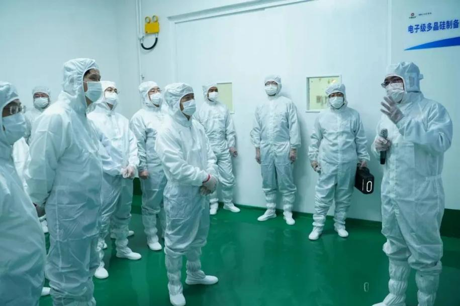 At the Luolong plant area, Weng Zuliang listened to the report on the R&D and design of silicon-based material technology systems of China Silicon Corporation Ltd. He also visited the National Engineering Research Center for Silicon-based Material Preparation Technology, laboratories, and pilot workshops to gain an in-depth understanding of the technological innovation system spanning mechanism research, small-scale tests, pilot-scale tests, and industrialization. At the Mengjin new plant area, Weng Zuliang visited the Exhibition Hall and conducted on-site inspections of the Control Command Center, Analysis and Testing Center, as well as the production lines for zone-melting polysilicon and electronic gases. He inquired in detail about the construction of intelligent factories, the operation of big data platforms, and the status of Phase II industrialization.